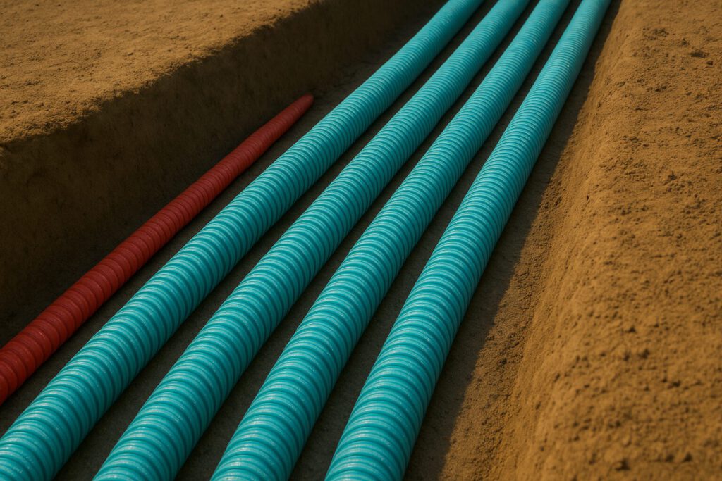 Les liaisons hydrauliques et les conduites en polyéthylène doivent être enterrées hors gel et signalées par un grillage avertisseur afin d’assurer leur protection et leur durabilité.