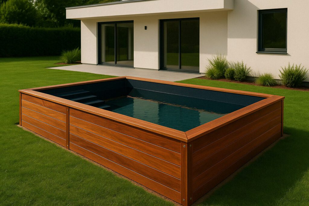 Le bois est une matière élégante qui permet la construction de bassins hors-sol, enterrés ou semi enterrés.